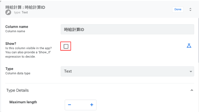 Column nameにyyyy/mm、App formulaにTEXT([支給日],”yyyy/mm”)と入力
